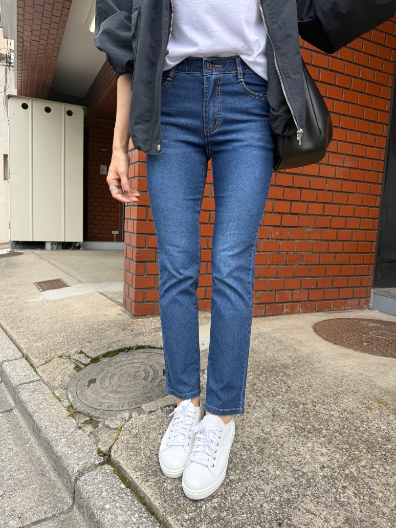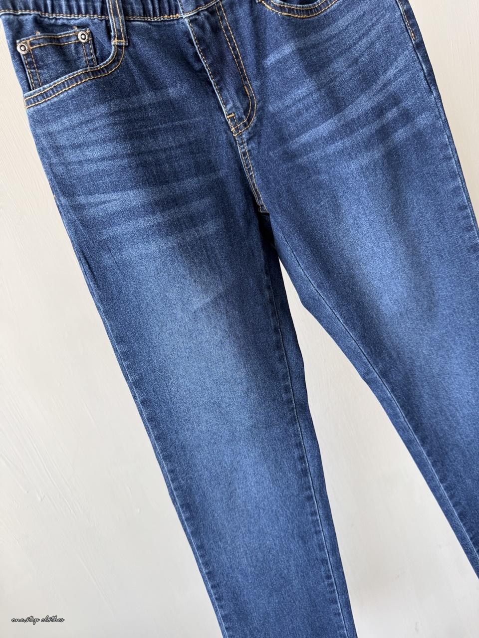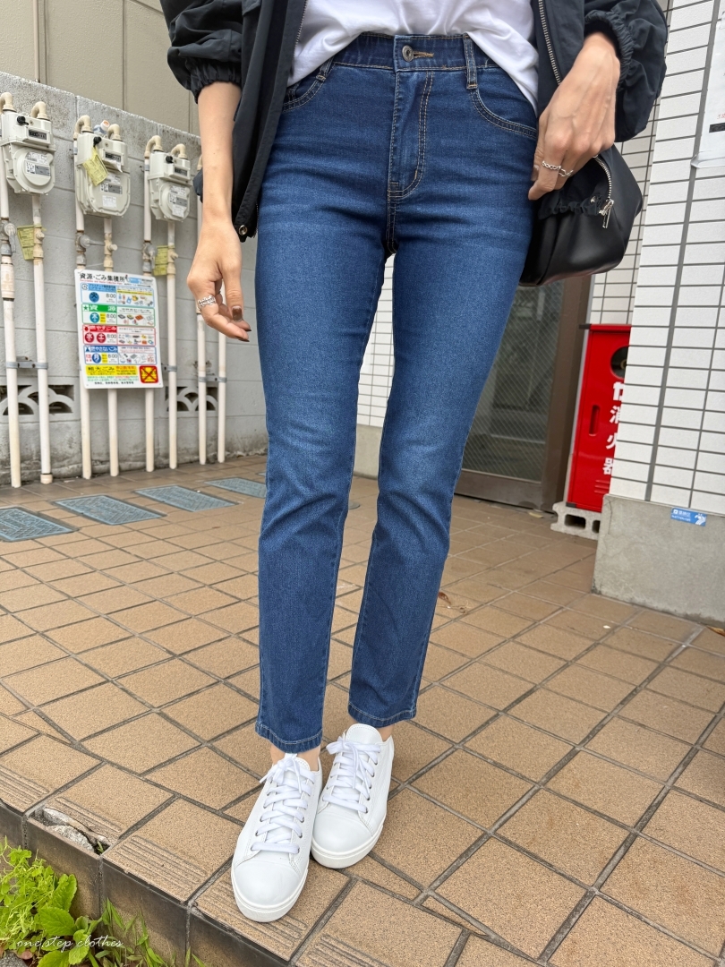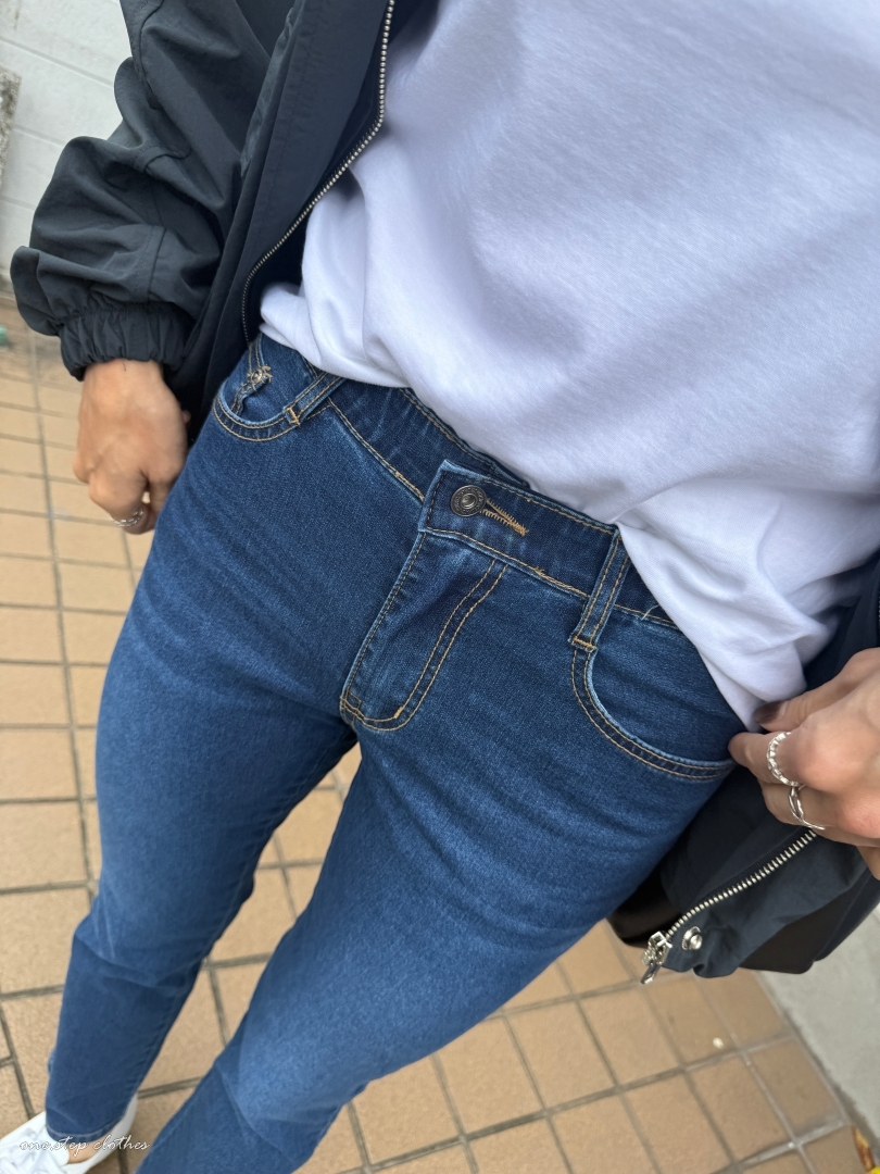 正韓Dream深藍修飾薄款鬆緊牛仔褲