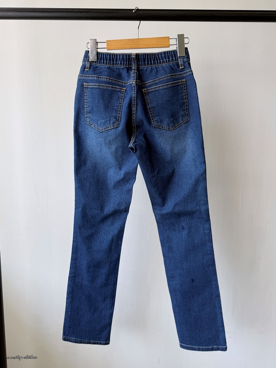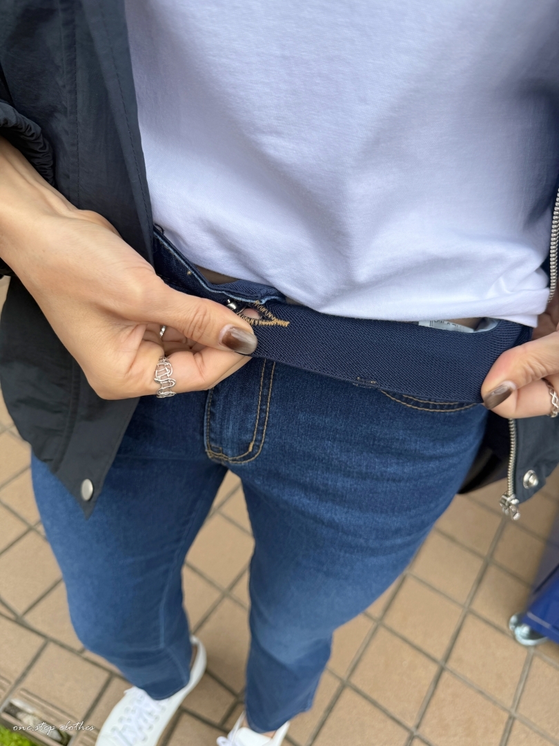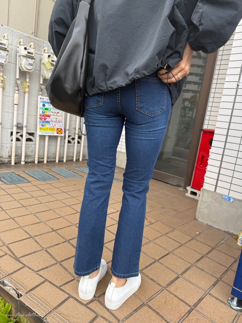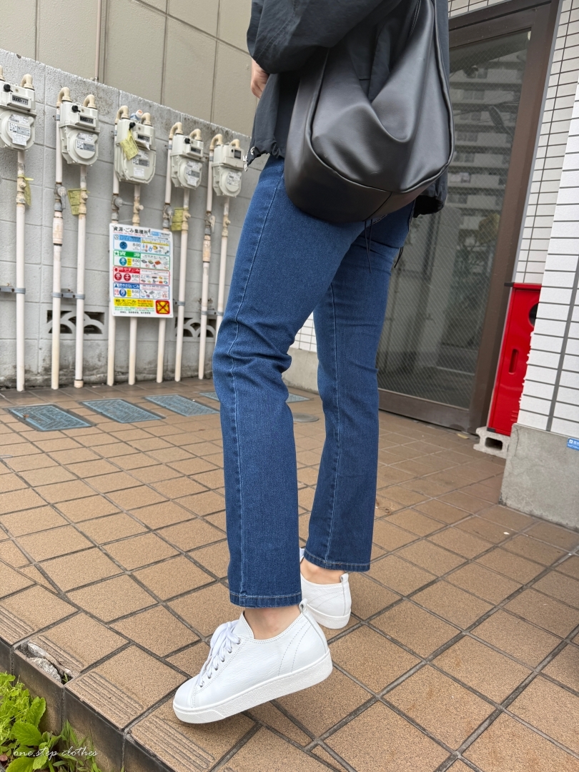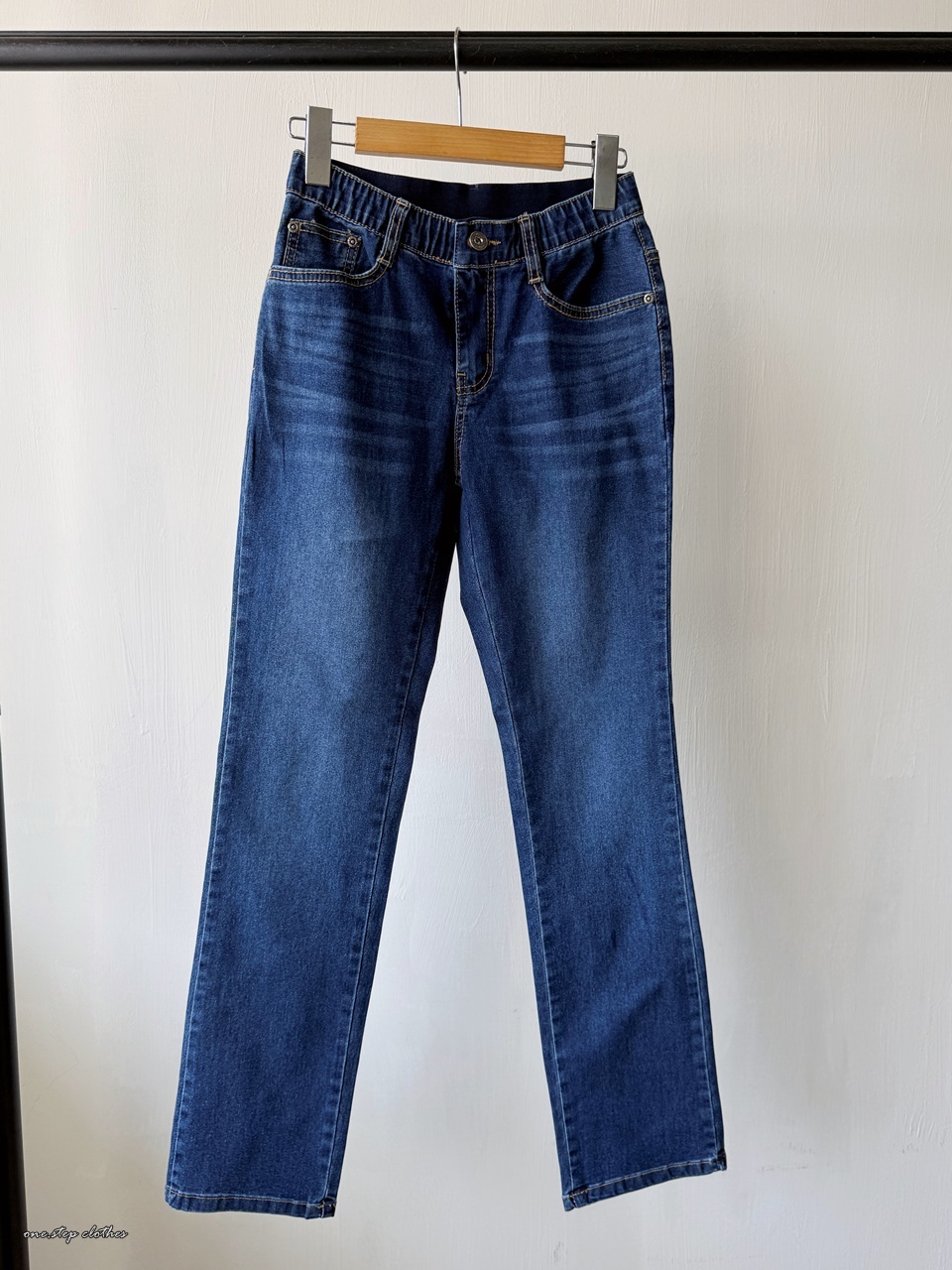 正韓Dream深藍修飾薄款鬆緊牛仔褲